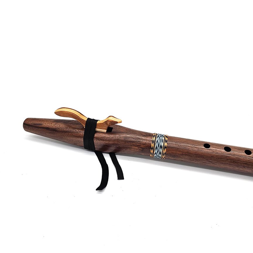 Close your eyes and let the rich and full tones of this Native American style D flute wash over you. The deep chocolate color, accentuating the figure of this American black walnut flute. You don’t have to be a wood worker to understand how truly special this piece of wood is, simple look at the color and chatoyance of the grain. Make this one of a kind flute the pride of your flute collection. With a voice to match its beauty, you won’t be able to put this flute down.
