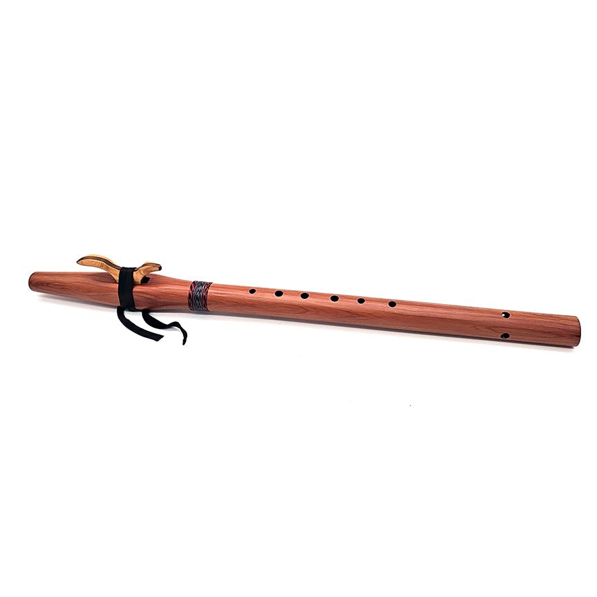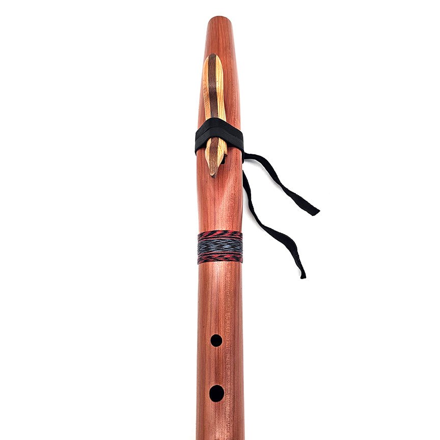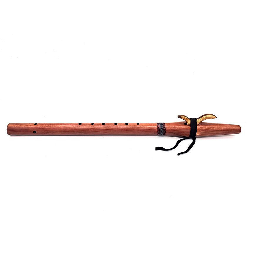 Enrich your life with the calming, low tones of our eastern cedar Native American style E flute. Feel the weight of your day lift as you allow each soothing note to penetrate into your being. The warm scarlet hue of this dense softwood is accentuated by a understated, smooth grain pattern. The subtle, aromatic smell of this wood is reminiscent of a warm, earthy spice.