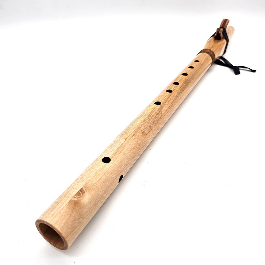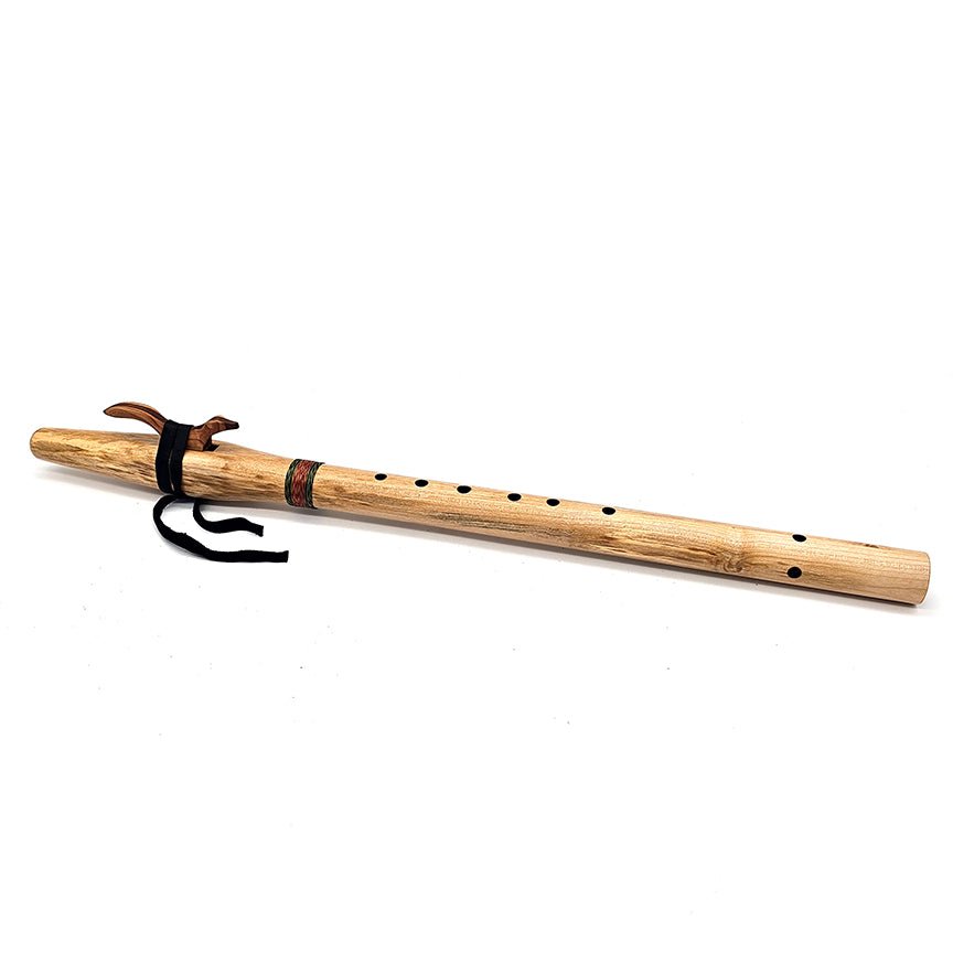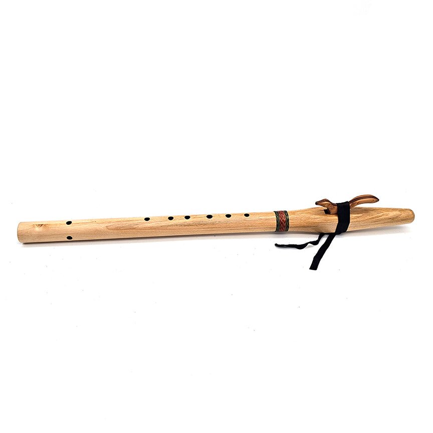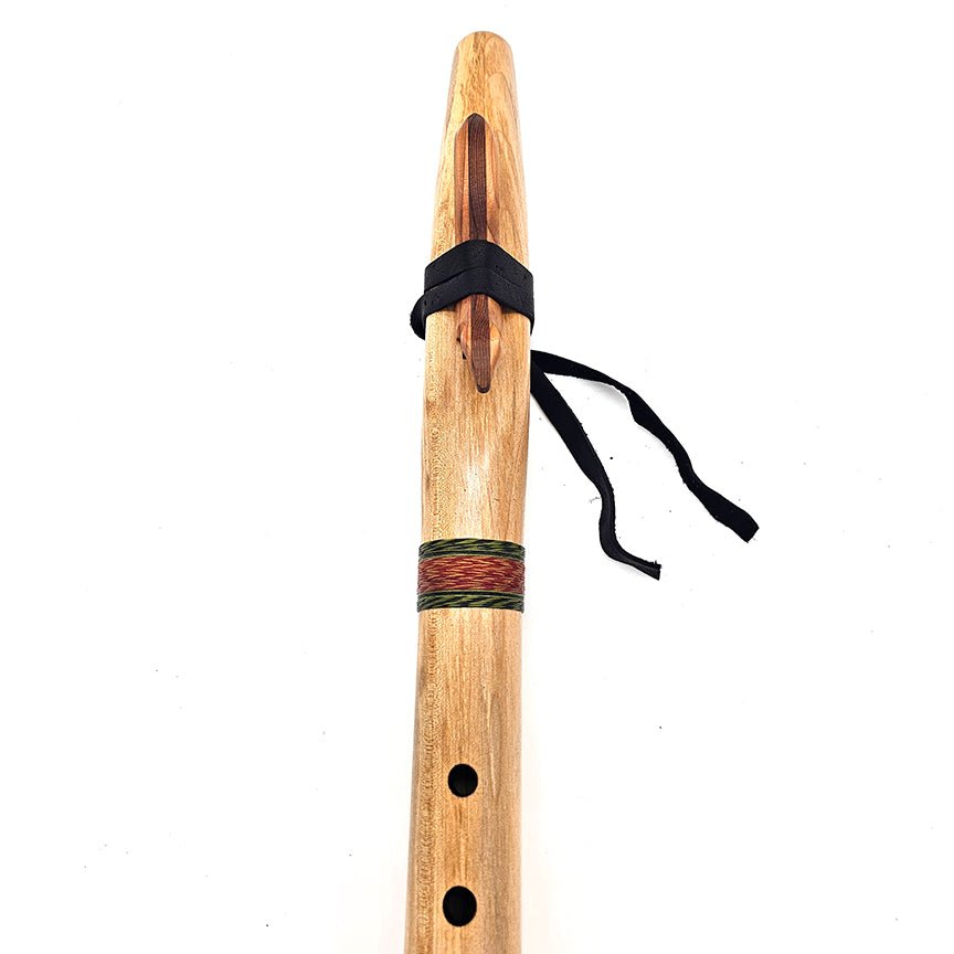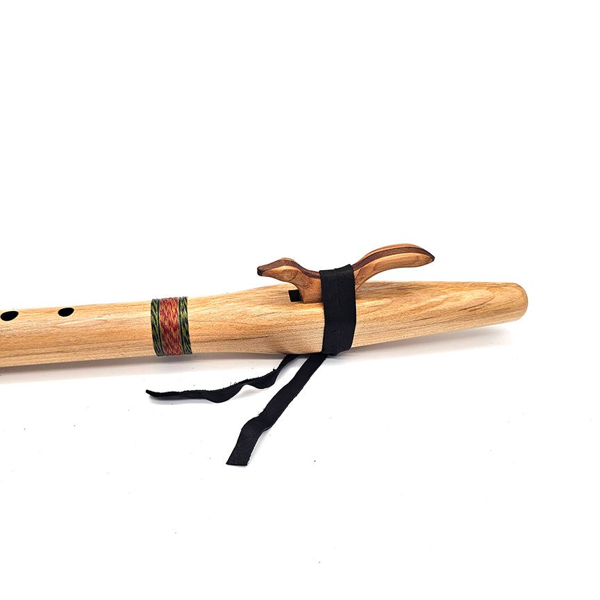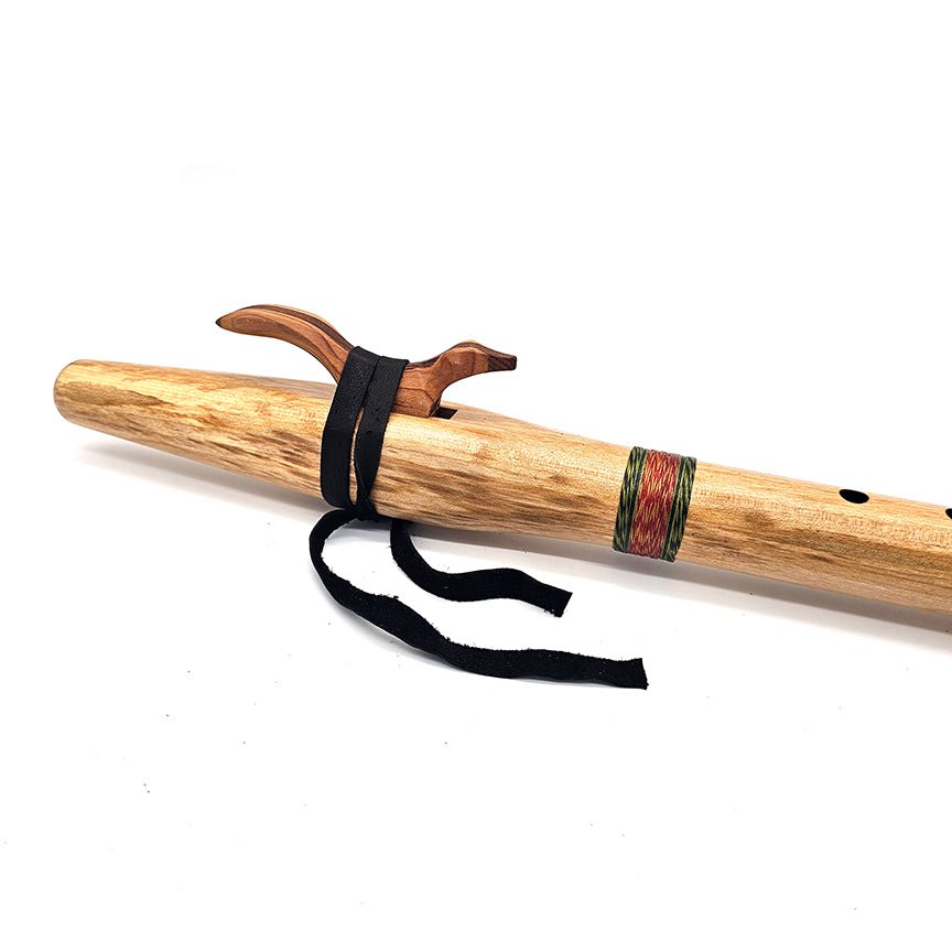 I chose reds and greens for this flutes hand woven cotton wrapping to remind the player of the colors of this beautiful tree bark and foliage. It features our signature animal shaped block and durable elk leather tie. Make this unique beauty the star of your flute collection!