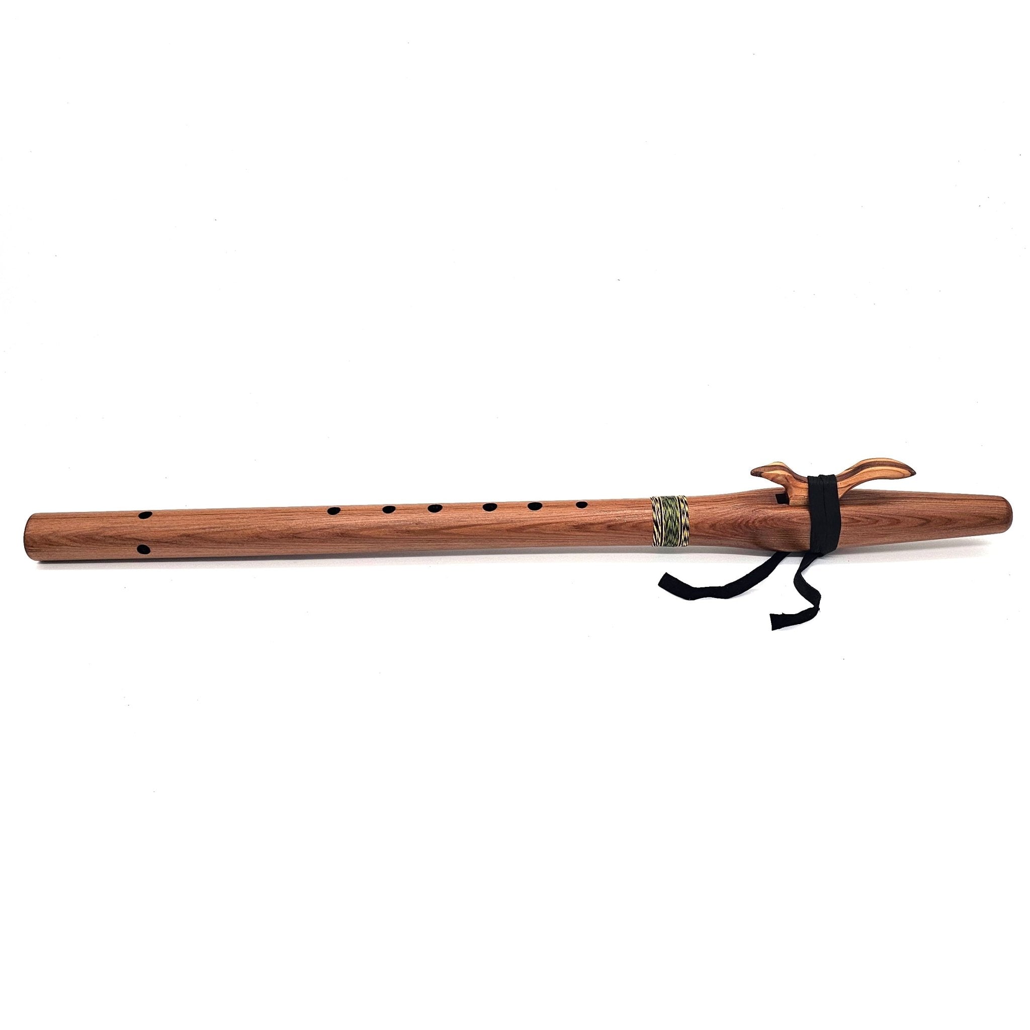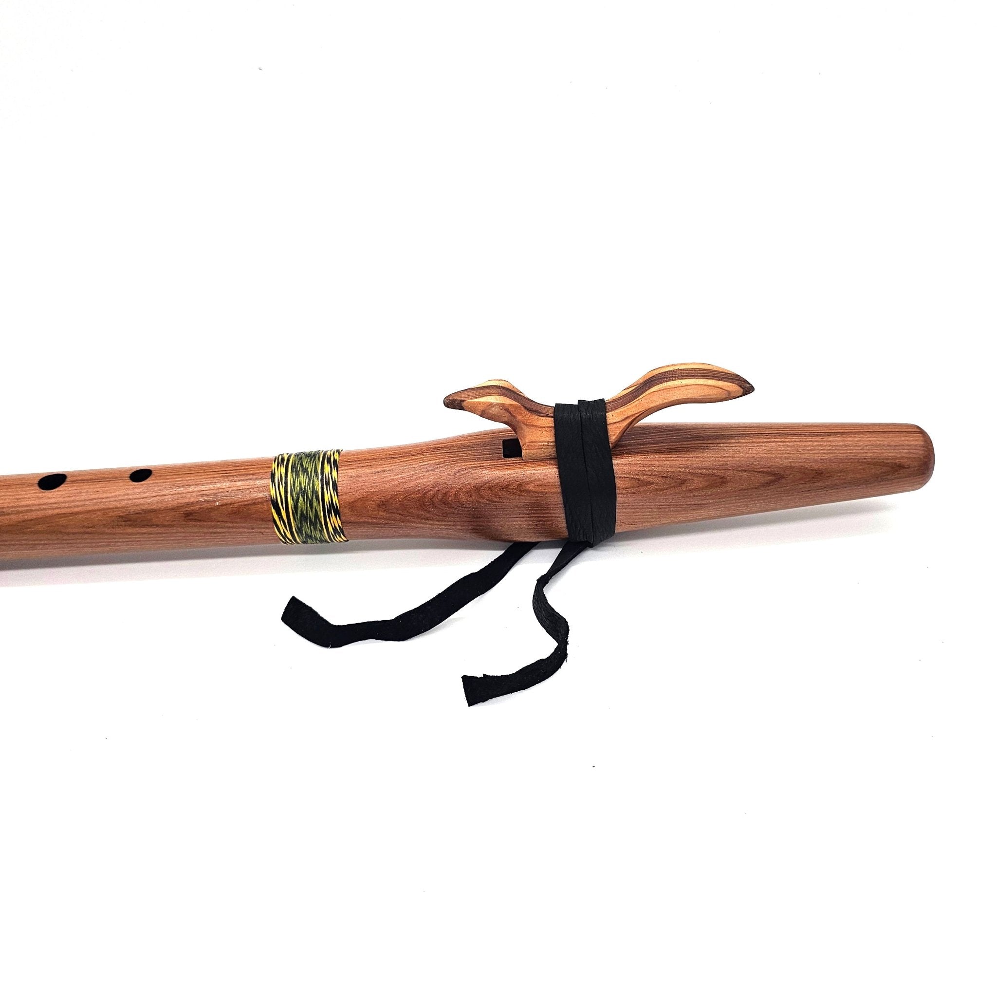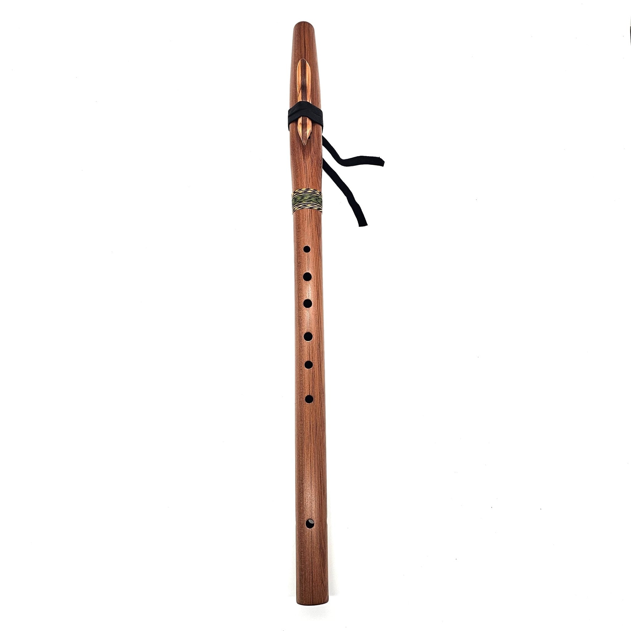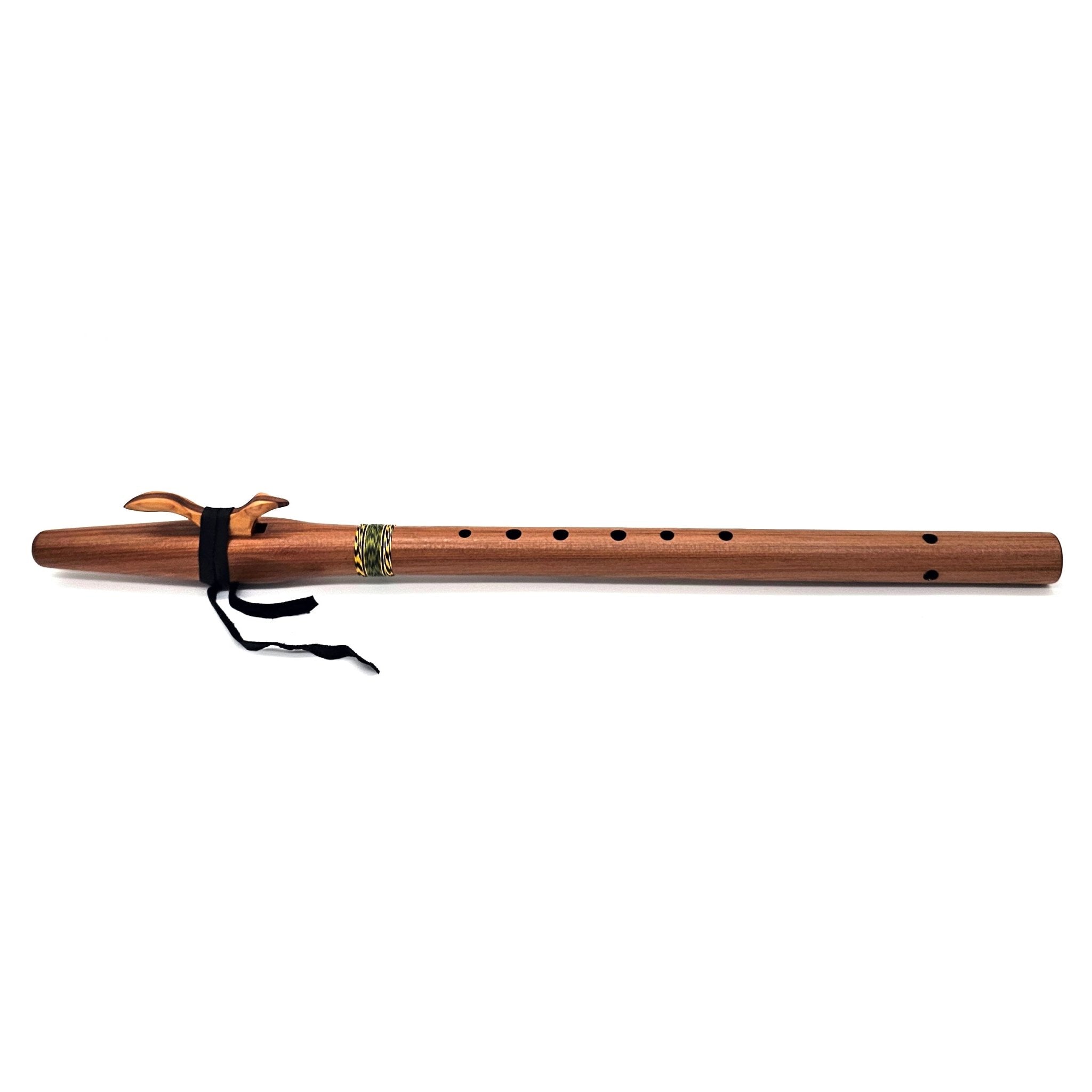 I chose hues of gold and green for the hand woven cotton wrapping to accentuate the red colors of the wood and remind the player of the foliage of the tree at sunset. This intermediate level flute will be the pinnacle of your instrument collection.