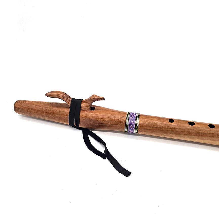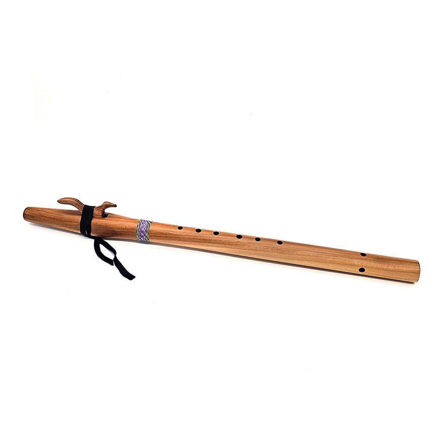 Find your inner calm with our western red cedar Native American style E flute. Let the deep, meditative tones of the flute sooth your nerves and slow your busy mind. This wood which is sacred to many indigenous peoples, lends a wonderful resonance to the voice of the flute. It is light in weight which allows the notes to send subtle vibrations through the wood which can be felt in the hands and chest. Rich red brown in color, this flute has a smooth finish and smells faintly of the aromatic wood it is made from.