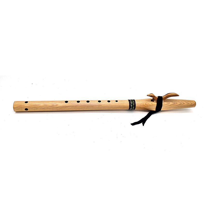 Hold this golden Hemlock Native American Style F flute in your hands and connect with the sounds of nature. With a deep, low voice this flute is sure to please. Made out of locally sourced wood, this hemlock flute is smooth and light weight in your hands. The grain has a wonderful character to it, providing an intimate look at the life of the tree.