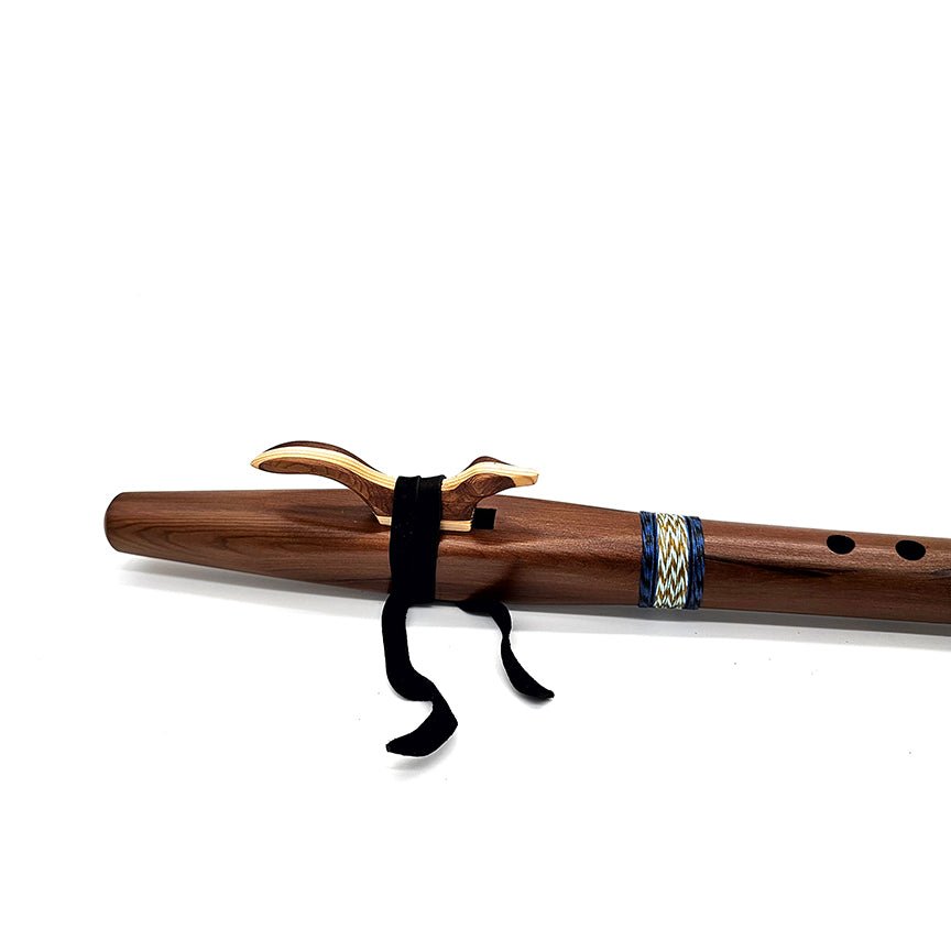 Take a moment to listen to the rich and full tones of this flutes voice. The lightweight wood lends such a wonderful resonance to this flute. A vibration you can feel in your hands and chest as you play. This piece of western red cedar is a very dark red brown color with beautiful waves and character in the grain. Truly a pleasure to play and look at!