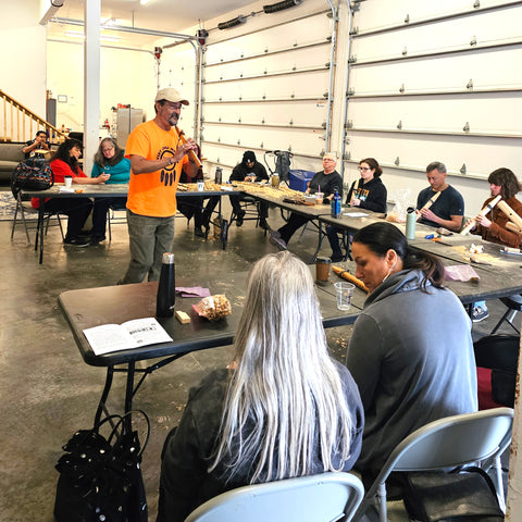 A bit of inspiration from the Yakima Nation: Their flute class, led by Jeremy Garcia, is 10 weeks long with a concert at the end. If students attend all (or most) classes and perform at the concert then they get to keep their flute. The students began the first class with flutes in the key of A (our smallest flute). They had many students who wanted to repeat it, so they graduated them to lower the keys of G and F Sharp (the F sharp is difficult for some people to play because of the size, but with practice these students were ready for the larger flutes!). Many of the students wanted to repeat the class 2-3 times!