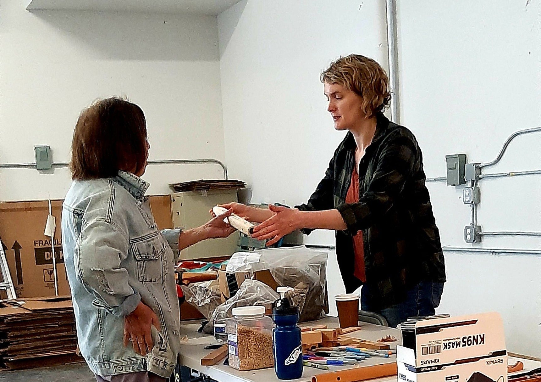 The process creates a lot of cedar shavings which many students like to bring home. We like to return the rest of the shavings to the forest.