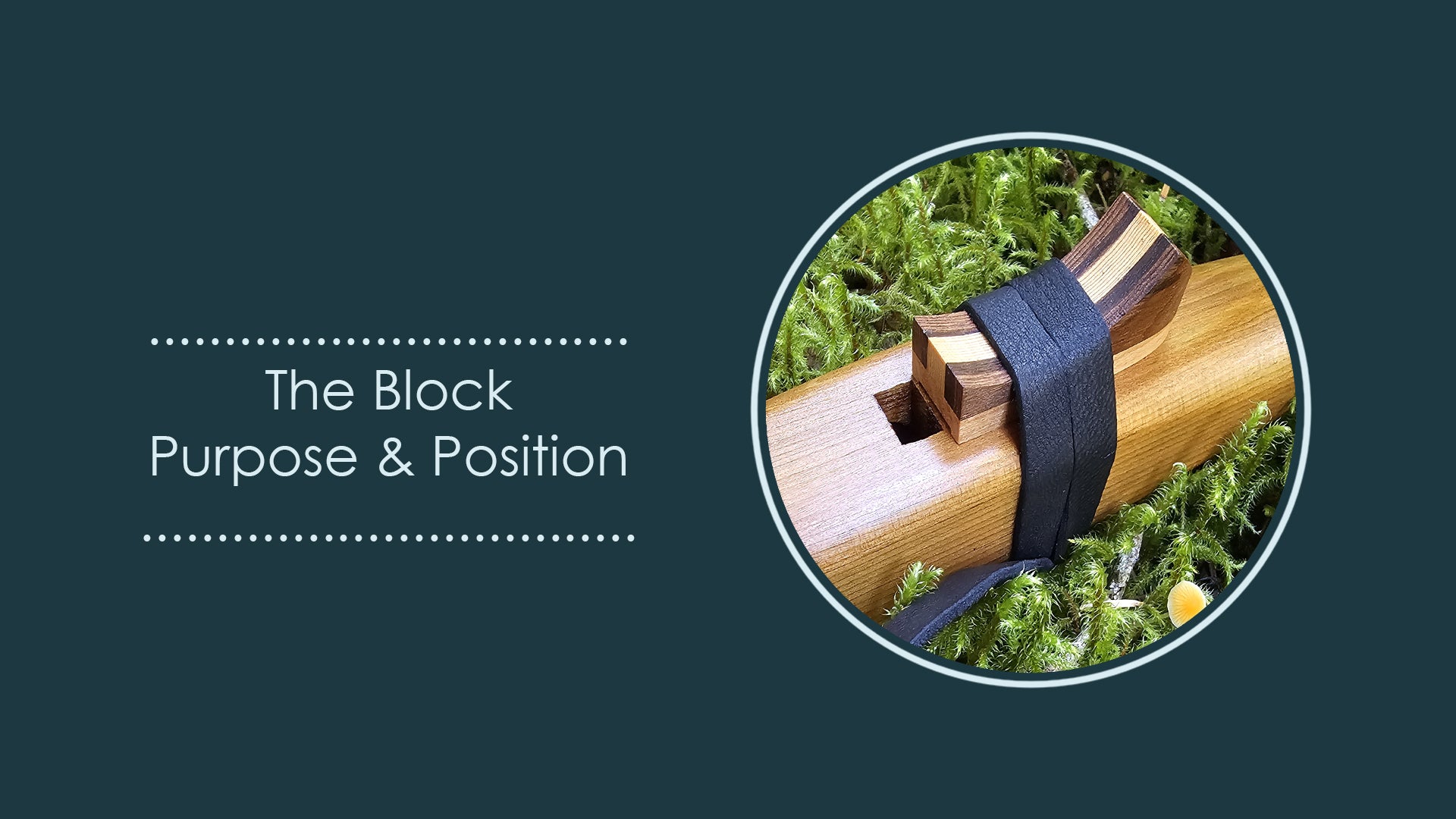 The block is the piece that is tied to the top of your flute. It’s purpose is to channel the air you blow through the mouth hole, across the square front fipple hole to create sound. When the block is in the wrong position, or not on your flute at all, your flute will not make sound or it will sound bad.
