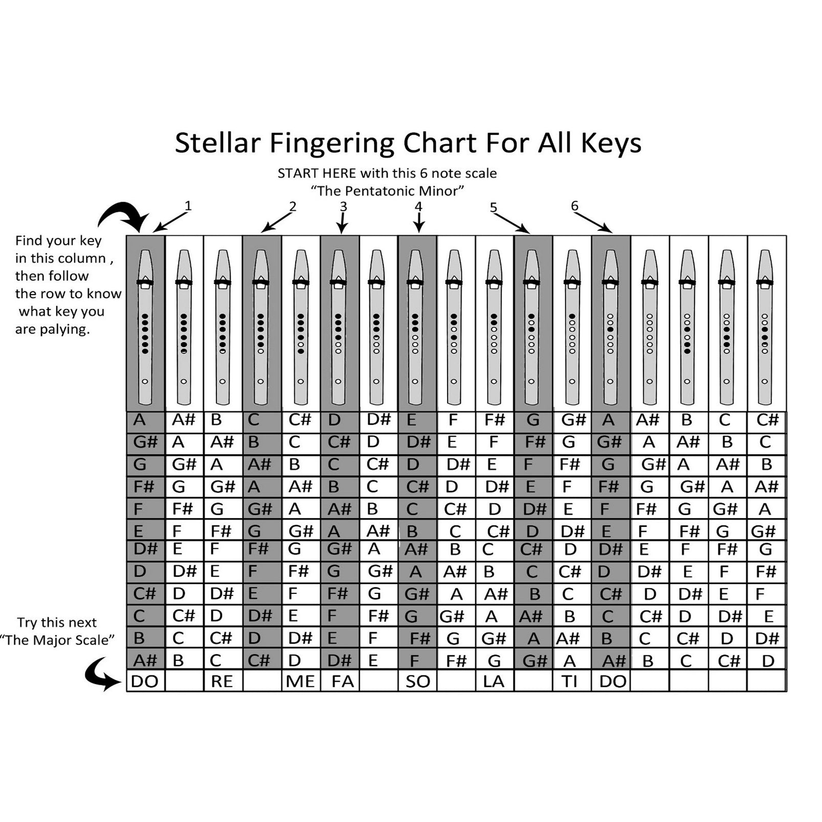 The last thing that I want to teach you about on your beginner flute playing journey is how to read the finger chart that you will find in the center of the booklet that came with your flute. This chart shows a lot of keys and can be overwhelming to look at and read so let me clarify it for you. You will find your key of flute in the left hand column and follow it to the right to read every note your flute can play. The shaded commons are the scale I taught you in the video above.
